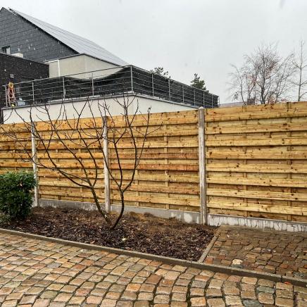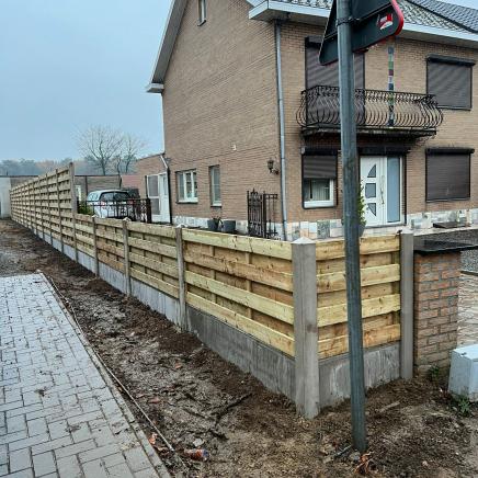 Een houten schutting kan je gemakkelijk combineren met andere materialen. Zo kan je ook hout met beton combineren. Als je een betonnen boordplaat onder de schutting plaatst en de schutting in betonpalen schuift, verleng je de levensduur aanzienlijk. Je houten schutting zal namelijk minder snel rotten of kromtrekken bij sterke windvlagen.